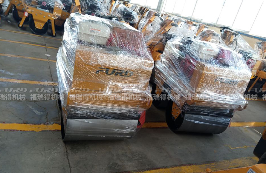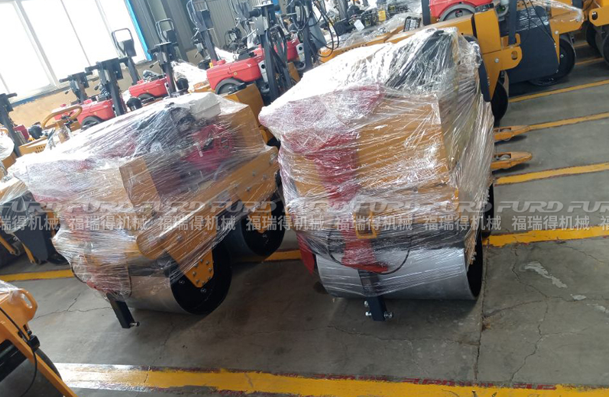 福瑞得2臺手扶雙鋼輪壓路機打包發(fā)往菏澤市