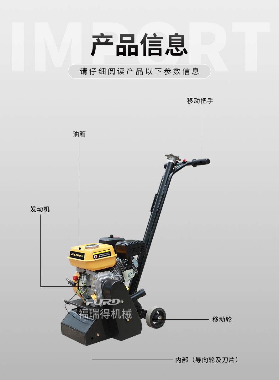 特點(diǎn):體積小、重量輕、機(jī)動靈活、工作效率高、操作簡單。 適應(yīng)范圍:主要用于瀝青道路、混凝土道路、物業(yè)小區(qū)、機(jī)場、停車場等地的標(biāo)線清除。